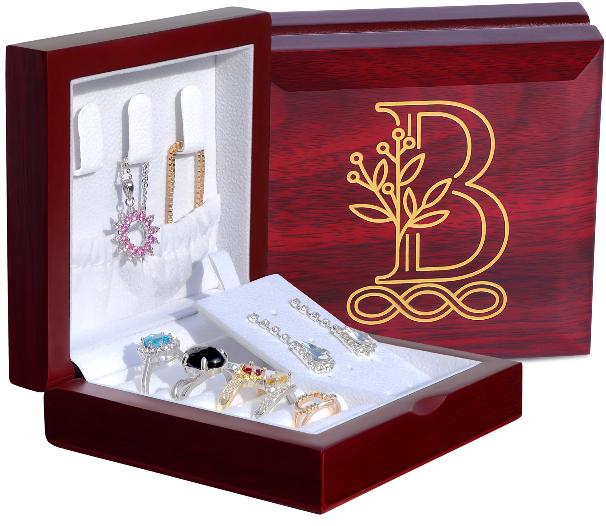 - Personalized Elegance: Custom engraved with your choice of initial or monogram, this wooden jewelry box adds a personal touch to your cherished accessories.